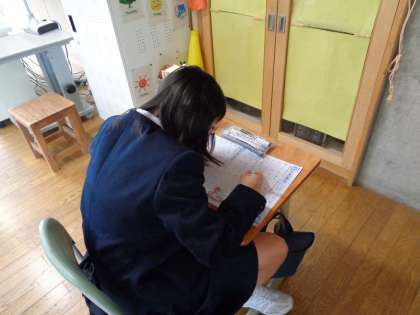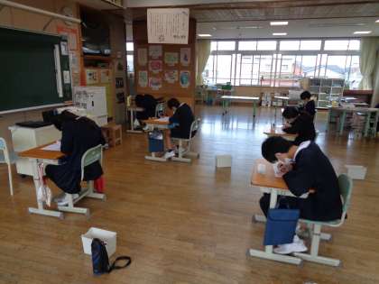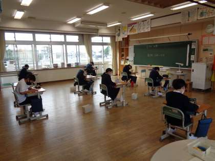 漢字50問テストに取り組む6年生。この日のために漢字の練習をたくさん行ってきました。その成果を存分に発揮しています。