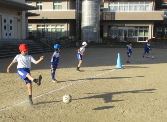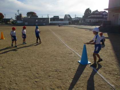 サッカーゴルフをした後、「卵わりサッカー1」(←ミニ動画参照)に取り組みました。今後も、ゲームを続けていきます。