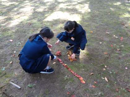 各グループで考えたものを協力して表現しています。秋らしい作品がたくさん生まれました。次は19日(金)に岩瀬浜へ行き、砂浜にあるもので表現していく予定です。