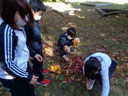 11月8日(月) 6年生 自然を感じるすてきな場所で「落ち葉の庭で」2