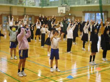 11月12日(金) 楽しいダンス集会 公開日 2021/11/12 更新日 2021/11/12 学校紹介 朝の岩瀬タイム。集会委員会から、募金のお知らせと、ダンスが紹介されました。踊り方を練習し、みんなで楽しく体を動かしました。 ミニ動画→ダンス練習、ダンス練習2