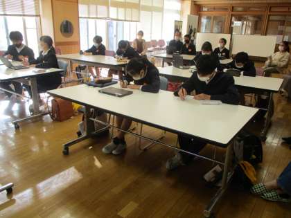 総合的な学習の時間に自分たちが学校のためにできることを考え、まとめたものを発表しました。また、最後に、音楽リコーダーの演奏も披露しました。ミニ動画→6年リコーダー発表