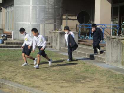 初めて「休み時間に校内で火事になった」という想定で、避難訓練を行いました。教室や廊下・トイレ・グラウンド・体育館などで休んだり遊んだりしていた子供たちは、非常ベルや放送をよく聞いて、静かに落ち着いて避難できました。「トイレでスリッパをはいていたら、ズックに履き替えるの」という質問もありました。さて、正解は?