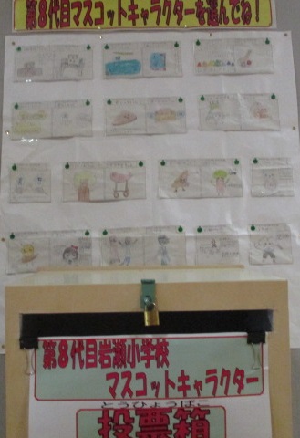 26日(金)、第8代(8年目)の岩瀬小学校マスコットキャラクターの投票が締め切られました。廊下に掲示された候補23枚の中から、全校児童が、自分がいいと思うキャラクターを選び、一人1票入れます。結果は12月に発表されます。お楽しみに。