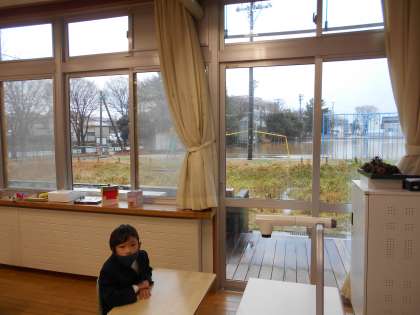 最近は雨が続いており、グラウンドで体を思い切り動かせません。しかし、昼間に降った雨で「グランドがしずんでいる!」と発見する子がいました。「大きな水たまりだね」と見たことのない光景に驚いていました。