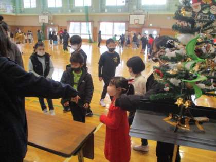 児童クラブや育友会執行部の皆様にお世話いただき、2年ぶりにクリスマス会を開催しました。