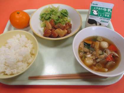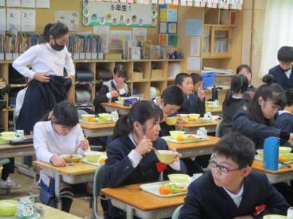 今日、給食時の校内放送でインタビューを受けた児童は、4年男子でした。また、給食の献立は「ごはん、魚と大豆のゆずソースがらめ、合わせあえ、とうじのだんご汁、みかん、牛乳」でした。2学期の給食や校内放送も、あと6回です。