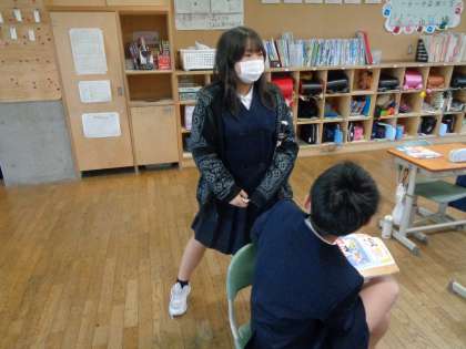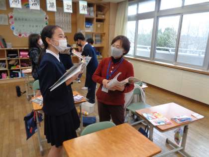 外国語では、「How much is it?」「Where is it from?」の質問を用いながら、友達や先生と会話しています。たくさんの笑顔があり、とても和やかに活動を行っています。