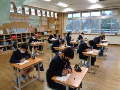 今日は、図書館の方からの読み聞かせがあった後、漢字の小テストを行いました。とても落ち着いた雰囲気で行っています。