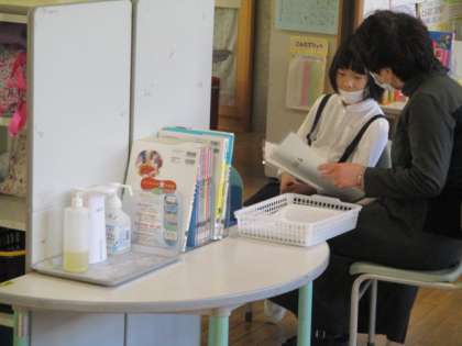 教室や廊下で、担任の先生から2学期の「あゆみ」(通知票)をもらう子供たち。どきどきですね。