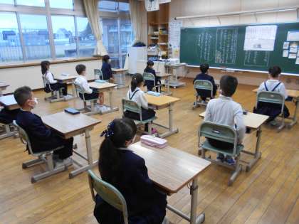 ピシッとした姿勢で始業式の放送を聞いています。3学期のスタートはバッチリですね!