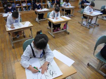 初めての書初大会でした。冬休みの練習を生かして、「かるた」を丁寧に書きました。
