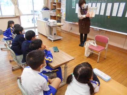朝読書の時間に図書館の方から読み聞かせをしてもらいました。今日は、「ゆきだるまとかがみもち」と「ゆきのかたち」を読んでもらいました。雪の降る日にぴったりの本でした。