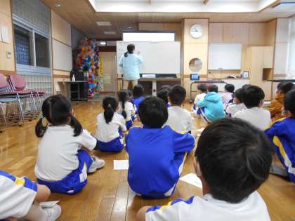 3学期の発育測定がありました。保健室の先生から、病気になりにくい体を作るために、早寝することや、暖かい衣服を身に付けることなどを教えてもらいました。