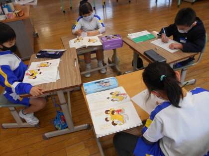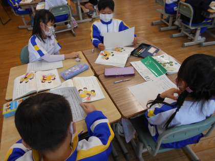 国語の時間に友達が冬休みに読んだ本や、お気に入りの本のおもしろいところを伝え合いました。登場人物について質問したり、話の展開を質問したりしていました。一人一人が落ち着いて、自分の話をしたり、友達の話を聞いたりできるようになってきました。