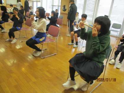 4年生が、地域の方から、横笛の吹き方を教わりました。横笛練習の仕方や以前の子供たちの様子などについて話を聞き、軽く音出し練習をしました。(間隔を空けて換気をしながら短時間で実施)残念ながら2年間、曳山車祭は中止ですが、子ども横笛の伝統を受け継いでほしいものです。