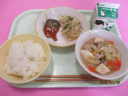 「ごはん、さばの照り焼き、はりはりソテー、白菜なべ、牛乳」でした。