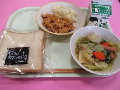 今週は学校給食週間で、本に登場する料理や食材が取り入れられました。最終日の今日は、誰もが知っている魔法のシリーズ物語にちなんだ「百味ビーンズのポトフ、ポークチョプ、ゆでポテト、食パン、チョコレートクリーム」でした。これからも、本の世界を通して料理や食材に興味をもつのも面白いですね。