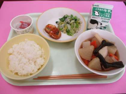 1月最後の献立は「ごはん、納豆、おでん、野菜の肉巻き、ゆかりあえ」でした。明日から2月です。