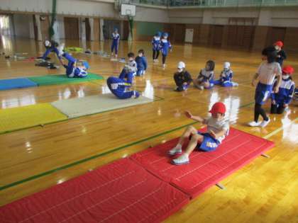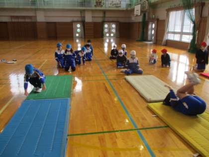 2月1日(火) 3年生 連続前回り 公開日 2022/02/01 更新日 2022/02/01 3年生 3年生が体育で、連続前回りにチャレンジしました。今まで、いろいろなゆりかごや体を支える運動を練習してきたので、どの子も確実に前転ができるようになってきました。ミニ動画→前回り1、連続前回り