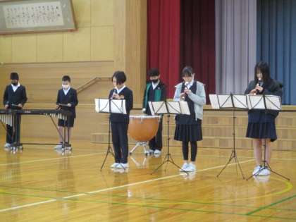 2月5日(土) 6年生 卒業思い出演奏 公開日 2022/02/05 更新日 2022/02/05 6年生 6年生が学習参観で保護者の皆様の前で披露するはずだった演奏です。小学校生活も残り2か月、卒業に向けて思いを込めた発表をミニ動画でご覧ください。→6年卒業演奏1、6年卒業演奏2