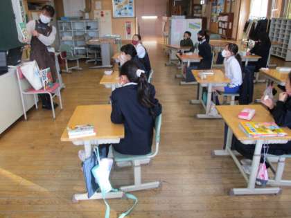 4年生が、読書をした後、図書館分館司書さんから、今年度最後の読み聞かせをしていただきました。これからも、多くの本に触れて、読書の世界に浸ってほしいと願います。
