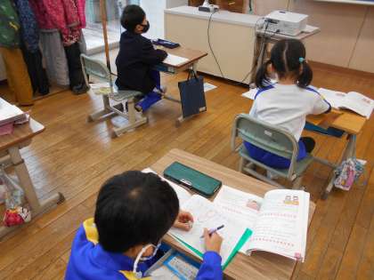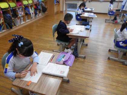 算数では、長い問題文を読んで、情報を整理しながら、足し算か引き算か考えていました。