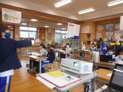 国語「これは何でしょう」ではクロムブックを使って、学校にある物のクイズを作りました。かたちや使い方のヒントを作り、ヒントの順序を考えました。ヒントで答えが分からないときは、質問をしました。