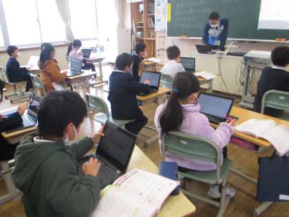 2月22日(火) 2年生 図をつかって考えよう 公開日 2022/02/23 更新日 2022/02/23 2年生 今日の算数はクロムブックを使って学習しました。クロムブックに図や式などを書き、みんなで考えを出し合っています。