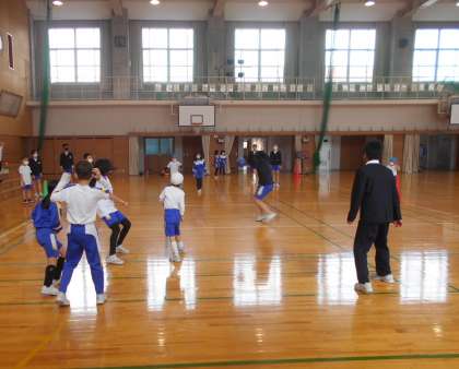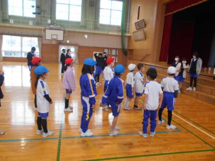 今日は体育で6年生が考えてくれた運動を一緒にしました。もうすぐ卒業する6年生との楽しい思い出ができました。
