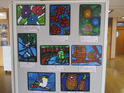 5年生の廊下には、図画工作の作品が掲示してあります。この一年で、高学年らしく、ずいぶんと表現力や制作技能が上がってきました。