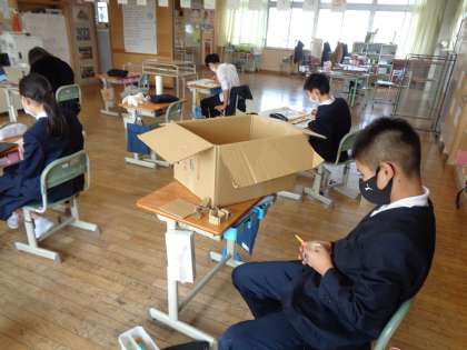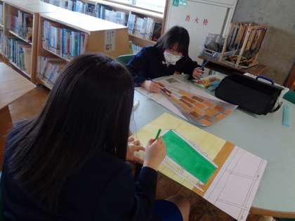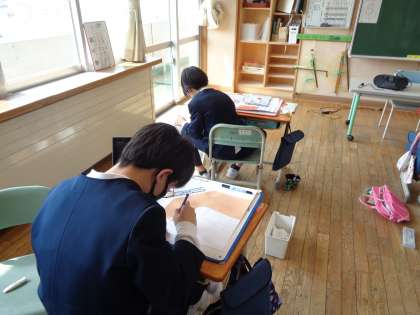 図画工作科では、前回同様、自分たちの思い入れのある場所を表現しています。ついに出来上がった子供もいます。明日で10人全員が完成予定です。