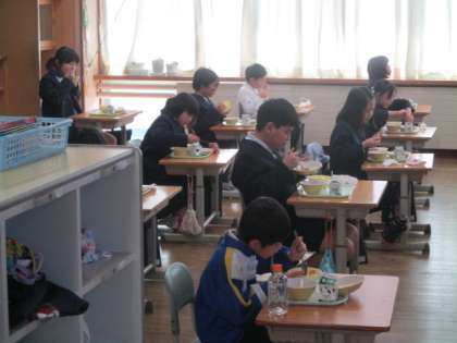 「ごはん、豚肉のキムチ炒め、こふきいも、卵ともずくのスープ」でした。今年度の給食も、残りあと3回です。