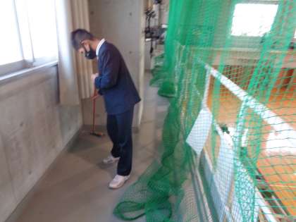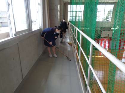 清掃プロジェクト最後の活動です。今日は、普段あまり掃除しない体育館の2階の通路のゴミを取ったり、掃いたりしました。