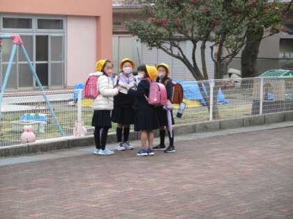明日(18日)卒業式を控え、6年生や下級生が登校してきました。1〜6年が一緒に登校するのは今日が最後です。