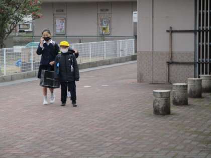 明日(18日)卒業式を控え、6年生や下級生が登校してきました。1〜6年が一緒に登校するのは今日が最後です。