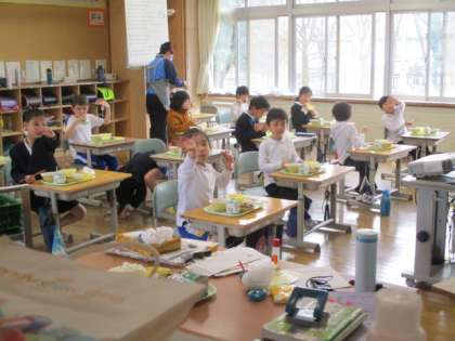 最後の給食は「ごはん、魚のかば焼き、はりはりあえ、味噌汁、カットパイン」でした。3学期の給食も、おいしく安全にいただきました。また、委員会児童は、1年間、放送の仕事を責任をもってやり遂げました。