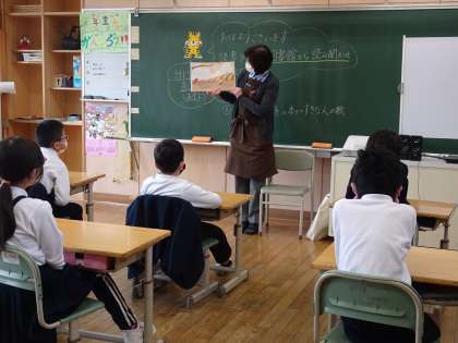 始めは、何も見ずにお話をしてくださるストーリーテーリングで、「エパミナンダス」でした。だんだん内容の分かってくると、子供たちからちいさなつぶやきや笑い声も聞かれ、お話の世界を楽しむことができました。
