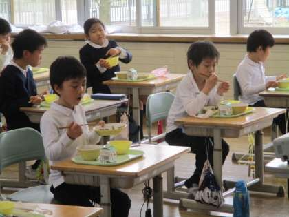 明日は、令和3年度修了式です。いつも通りに登校し、11:30頃、全校下校します。内履きズック等を入れる袋やバッグを持たせてください。(下の画像は、最後の給食や校内放送の様子)