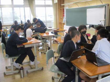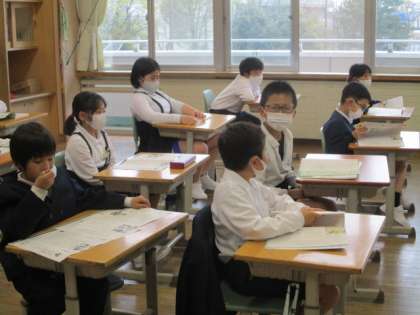 4年生は道徳科の学習をしています。 6年生は集会の準備をしています。