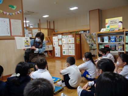 図書館の利用の仕方や図書の分類について、クイズも交えながら教えていただきました。読み聞かせもあり、とても集中して聞く姿が見られました。