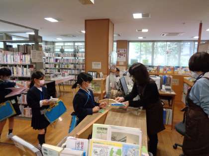 読みたい本を選んで2冊借りました。教室に戻って、早速読んでいましたよ。