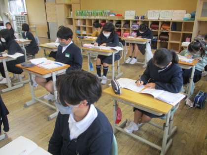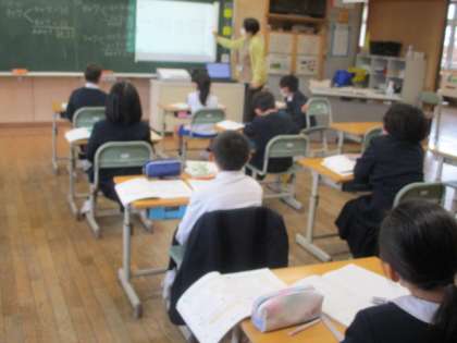 3年生と5年生の教室では算数の学習に取り組んでいました。先生の話をしっかり聞いて、よく考えています。