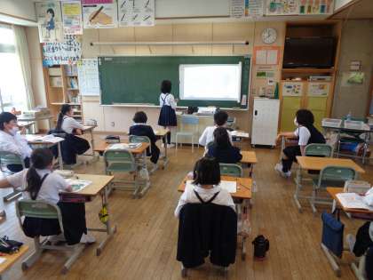 今日は直方体と立方体の体積を求める方法を考えました。立体のたて×横を計算することで、1段分の体積が求められることに気付いた子供たちは、さらに高さをかけることで、立体の体積を求められることを考え出しました。友達の考えを聞いて疑問点を質問するなど、学び合う姿が見られました。