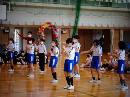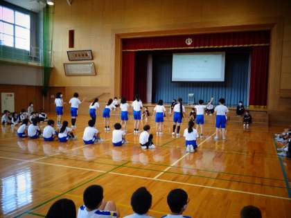 5年生の子供たちは、入学おめでとう集会ではダンスを披露しました。音楽に合わせて笑顔で踊りきった子供たちの表情からは、1年生さんに「入学おめでとう」の気持ちを伝えられて満足した様子がうかがえました。