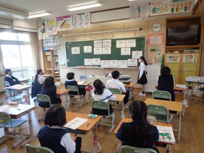 今日は、自分の考えをホワイトボードにまとめて、学級で伝え合う活動を行いました。友達にわかりやすく伝えるために、図に線や式を書き入れて説明する子供たちでした。