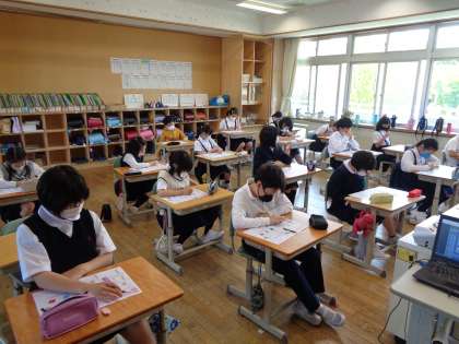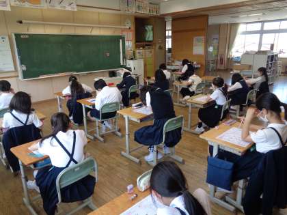 今日は、子供たちにとって初めてとなる外国語のテストを行いました。CDの音声をしっかり聴いて、問題を解き進めていく子供たちでした。