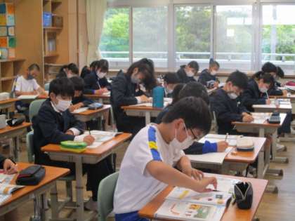5年生は社会科の学習、6年生は算数科の学習に取り組んでいました。