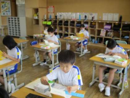 3年生は、辞典を使って漢字の読み方を確かめていました。