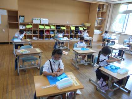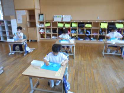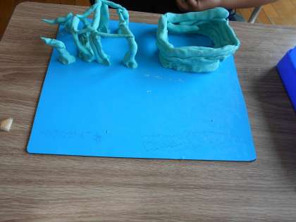 図画工作科で、ねん土遊びをしました。ねん土をひもにして、つくりたいものをつくりました。